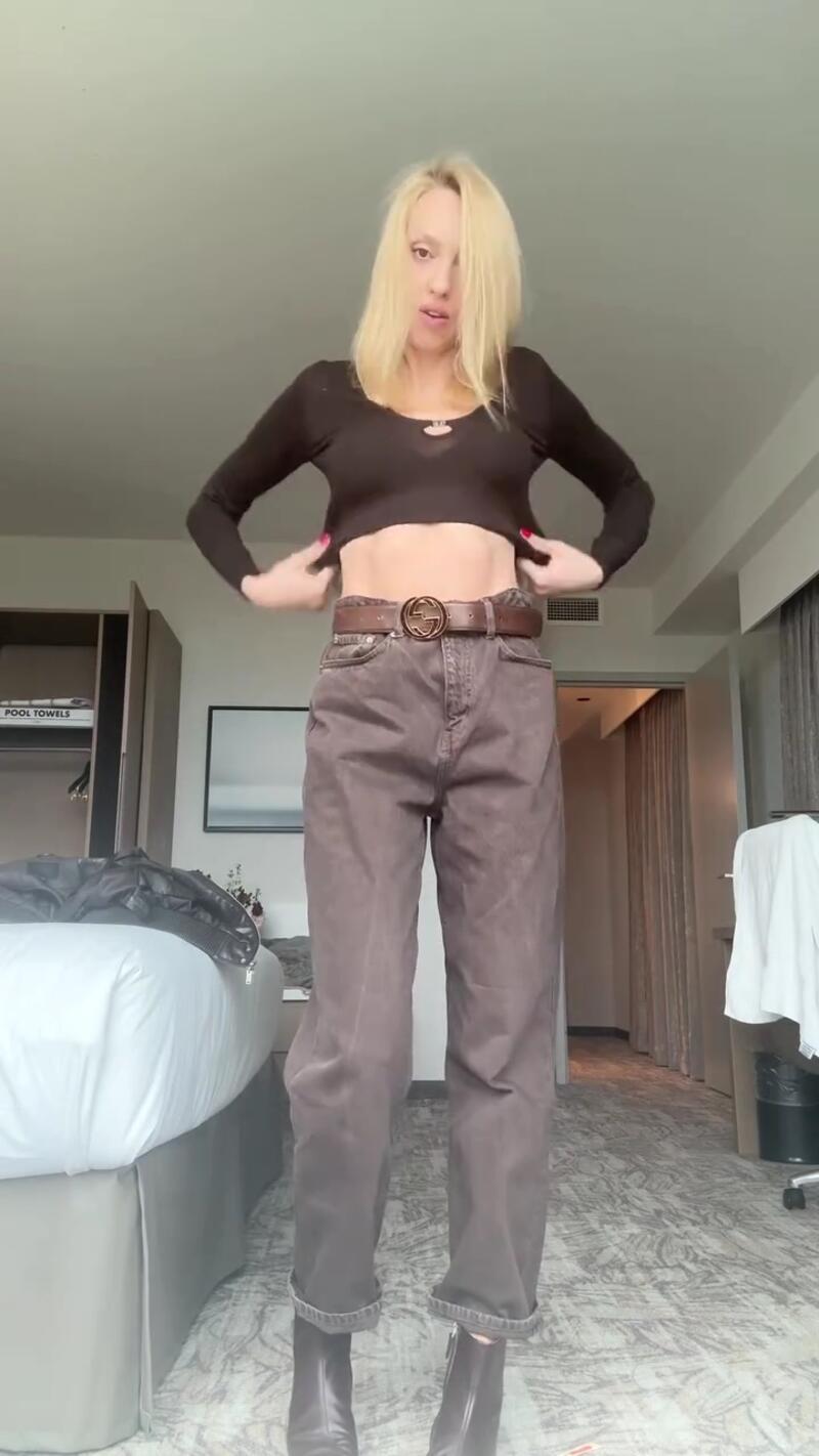 Оля Полякова продемонстрировала свою стройную фигуру, опубликовав для подписчиков динамичный ролик в формате "Get Ready With Me". В начале видео 46-летняя артистка предстала в нижнем белье и носках. Затем шаг за шагом блондинка собрала повседневный образ. Лук включал коричневые джинсы и черную кожанку.