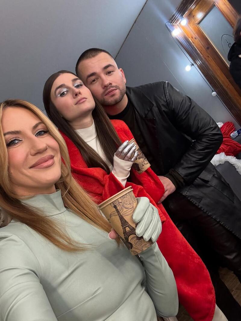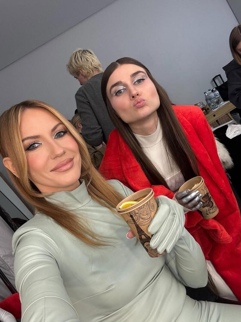 В студии Никитюк позировала для серии стильных кадров, демонстрируя тонкую талию и ноги. Еще она сфотографировалась вместе с певицей Jerry Heil.