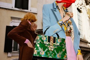 Съемки проходили в Риме. На его старинных улочках, на фоне исторических зданий и возле знаменитого фонтана Треви, где модели обедали и занимались обычными делами в окружении диких животных. Весенне-летняя коллекция Gucci вышла достаточно пестрой и контрастной. Пиджаки в ней расшиты, а платья украшены пышными воланами.