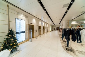 На всех этажах звучит разная музыка и есть разные звуковые зоны – всего их 26. На первом этаже располагаются магазины с парфюмерией, косметикой и аксессуарами. Второй этаж заполнен женской одеждой сегмента премиум. Третий – повседневная женская, средний плюс. Четвертый этаж отдали под спортивные товары. Также здесь вскоре откроется зона с украинскими брендами, которые выиграли в конкурсе ЦУМ UA. Всего их будет десять: Zhilyova Lingerie, Podolyan, Finch, 2х2, RCR Khomenko, Rito, Kachorovska, MustHave, Marsala и L.A.P.T.I.
